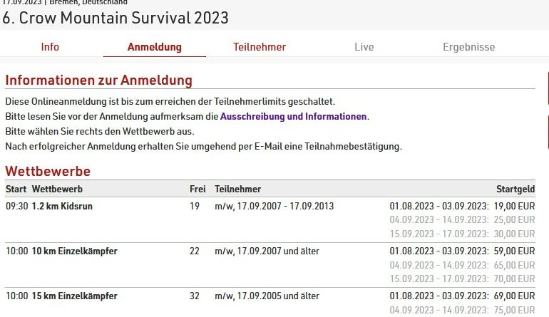 Read MoreWir haben wichtige Neuigkeiten für euch! Beim Crow Mountain Survival am 17. September haben wir die Nachmeldung für die 10